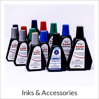 As one of the nation's leading manufacturers of custom rubber stamps, we also lead the pack in rubber stamp ink. Whether you purchased a traditional wooden handled stamp, a self-inking stamp, or a pre-inked stamp from us, we have the right ink for you. To order additional ink, or an ink pad for stamping, simply match your stamp to the ink description provided. Remember, some ink stamps only accept certain types of inks. Be 100% sure you've chosen the correct ink before placing your order!